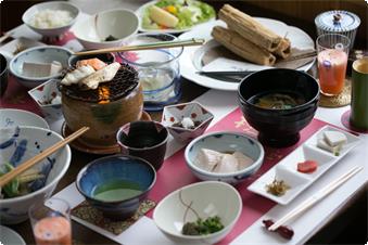 都わすれが支持される理由の一つに夕食があるといいます。女将の誘いでやって来た日本料理店で料理長をしていた板長が、クオリティの高い新しい感じの田舎料理が食通をうならせているようです。ベジタリアンの方や、マクロビオティック食の相談も聞いてくれるそうですよ。