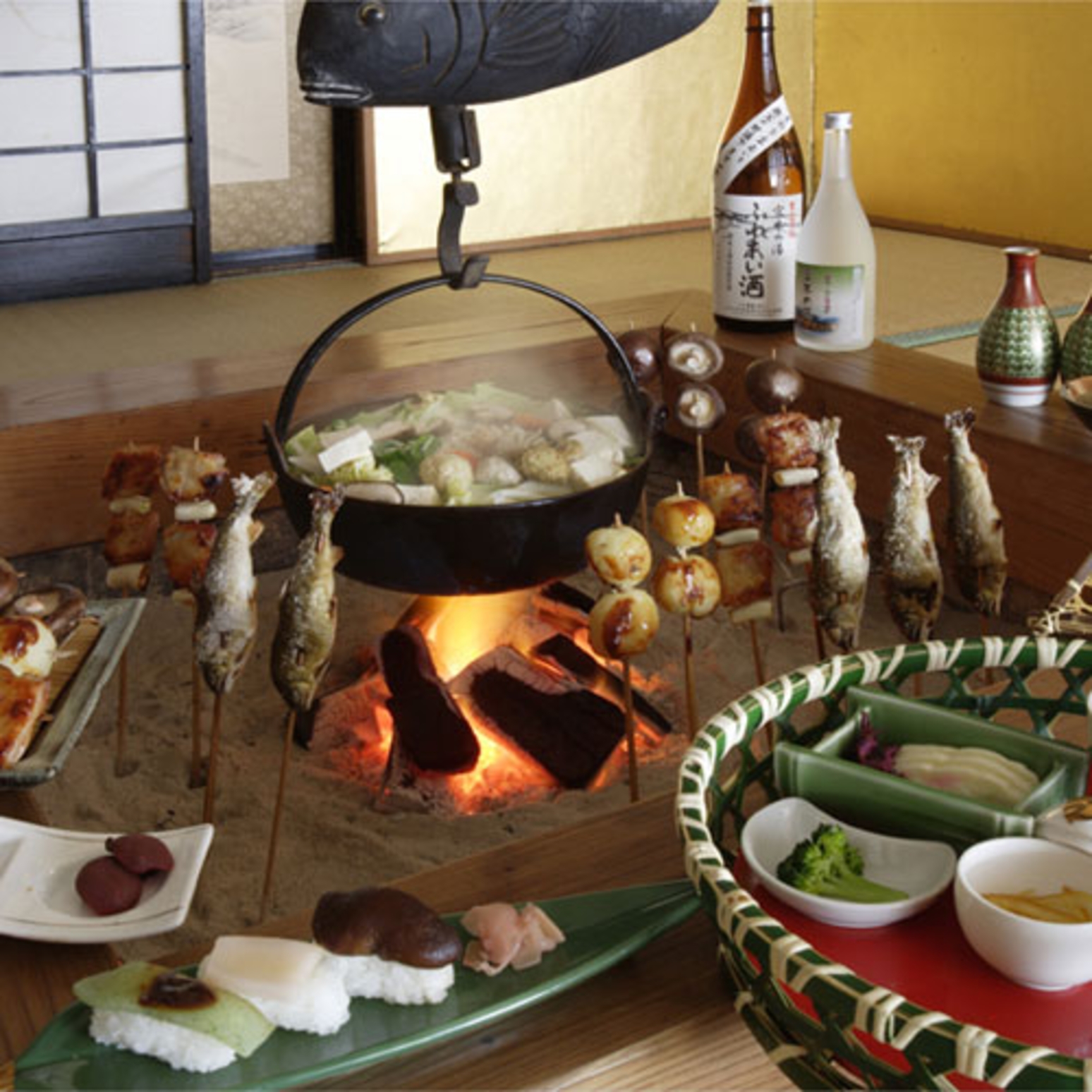 自家製農園で取ったばかりのもぎたての野菜、清流で育った川魚などの地元の里山素材を、ご当主宮本さん直伝の本場ちゃんこ鍋を宮本家のいろりやかまどで調理してくれるとか。もちろん刺身やステーキなど、料理をボリュームアップしたいは追加メニューもあるそうです。