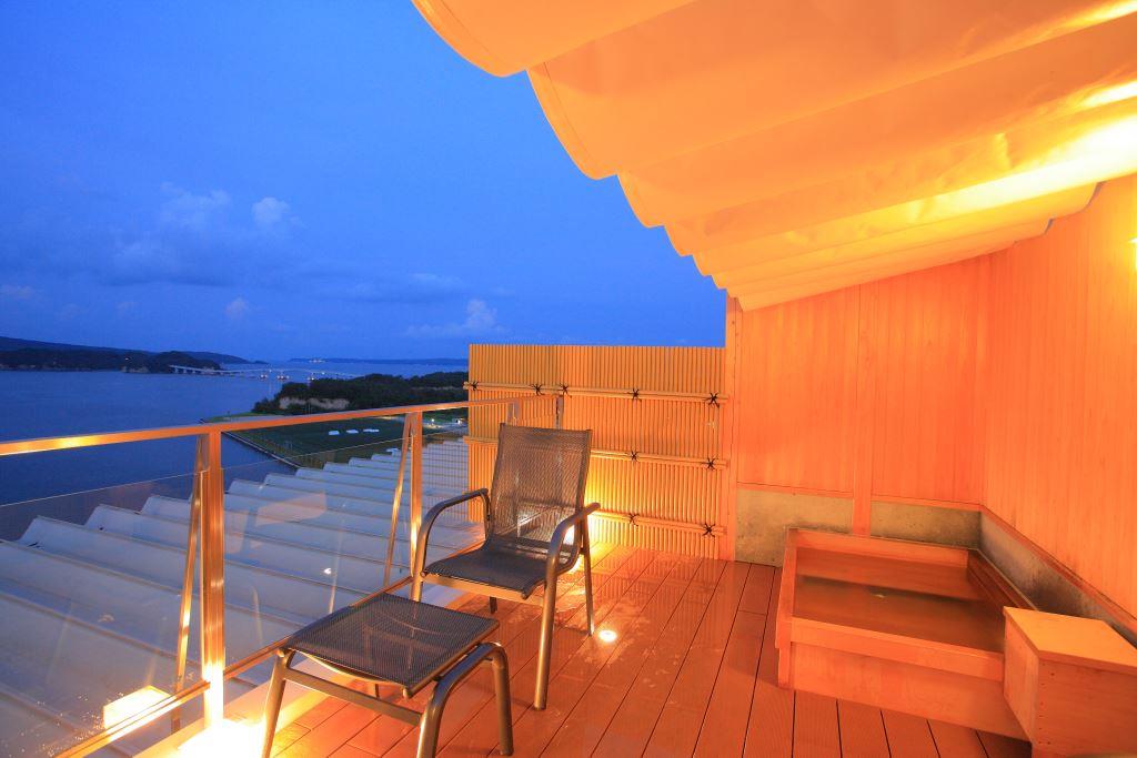 1401号室、プレミアムの名の通り七尾湾を望む最上階のテラスから夕日に染まる七尾湾を眺めながら、この部屋でなければ味わえない至福の時が楽しめます。